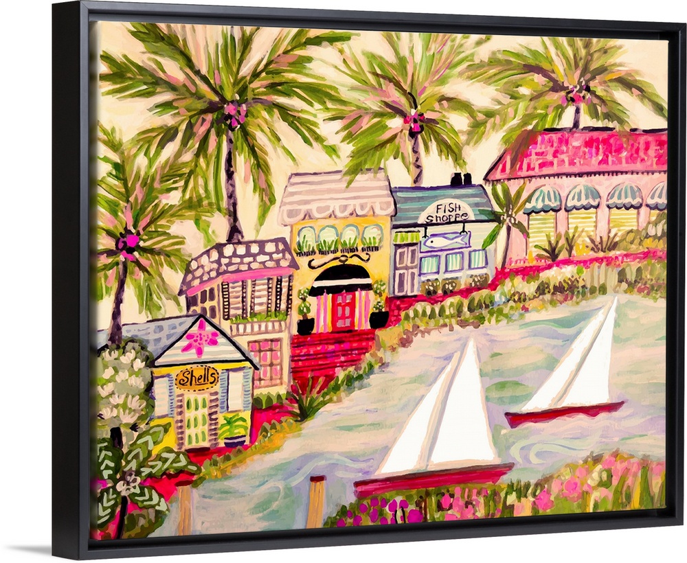 Art Contemporary Art Rivers, Lakes, and Oceans Karen Fields Painting Peach Fuzz She Shed Décor Transportation Boat Sailboat