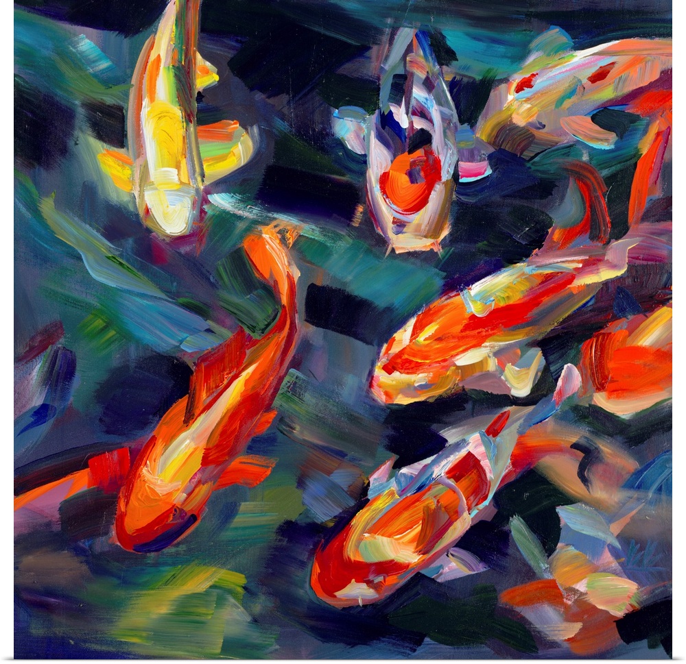 Art Blue Wall Art Brooke Borcherding Contemporary Art Painting Wildlife Marine Life Fish Koi