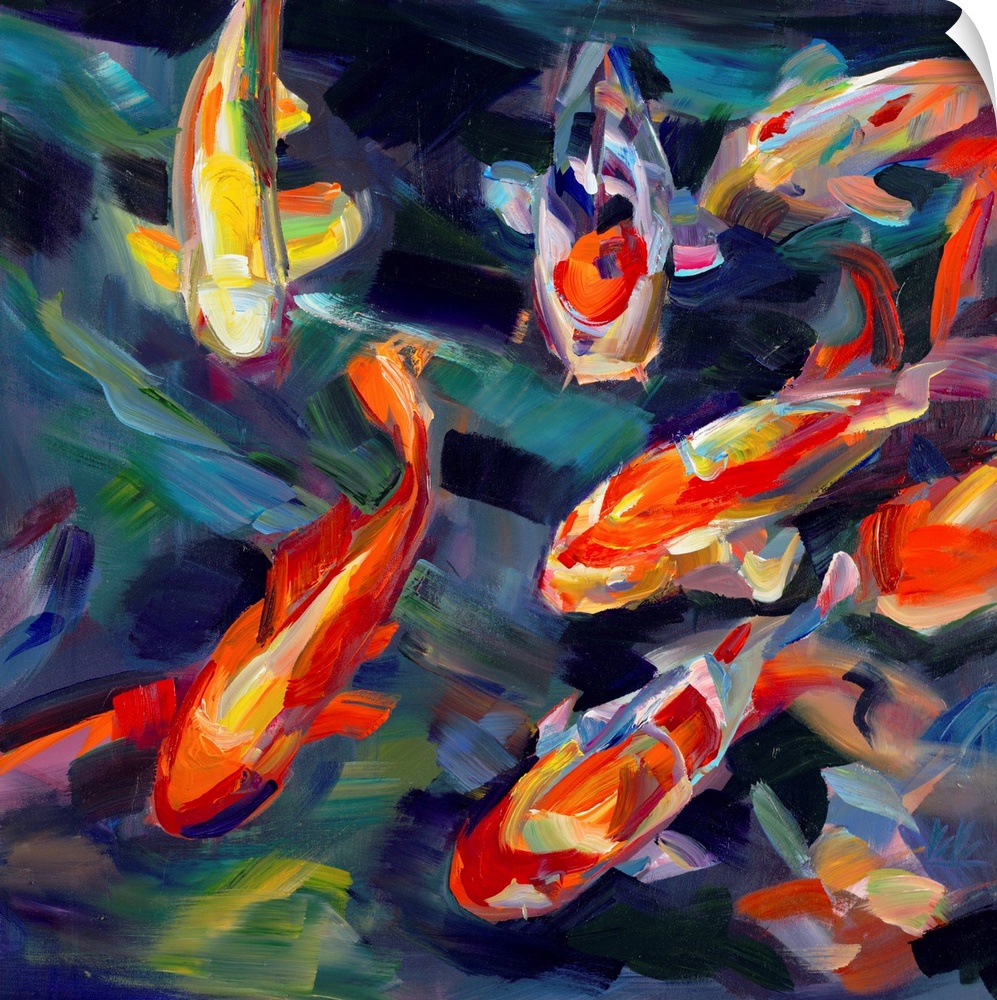 Art Blue Wall Art Brooke Borcherding Contemporary Art Painting Wildlife Marine Life Fish Koi