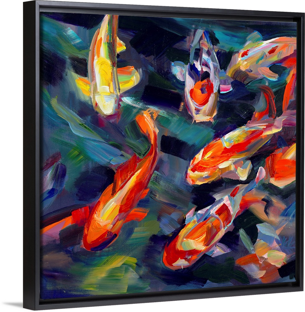 Art Blue Wall Art Brooke Borcherding Contemporary Art Painting Wildlife Marine Life Fish Koi