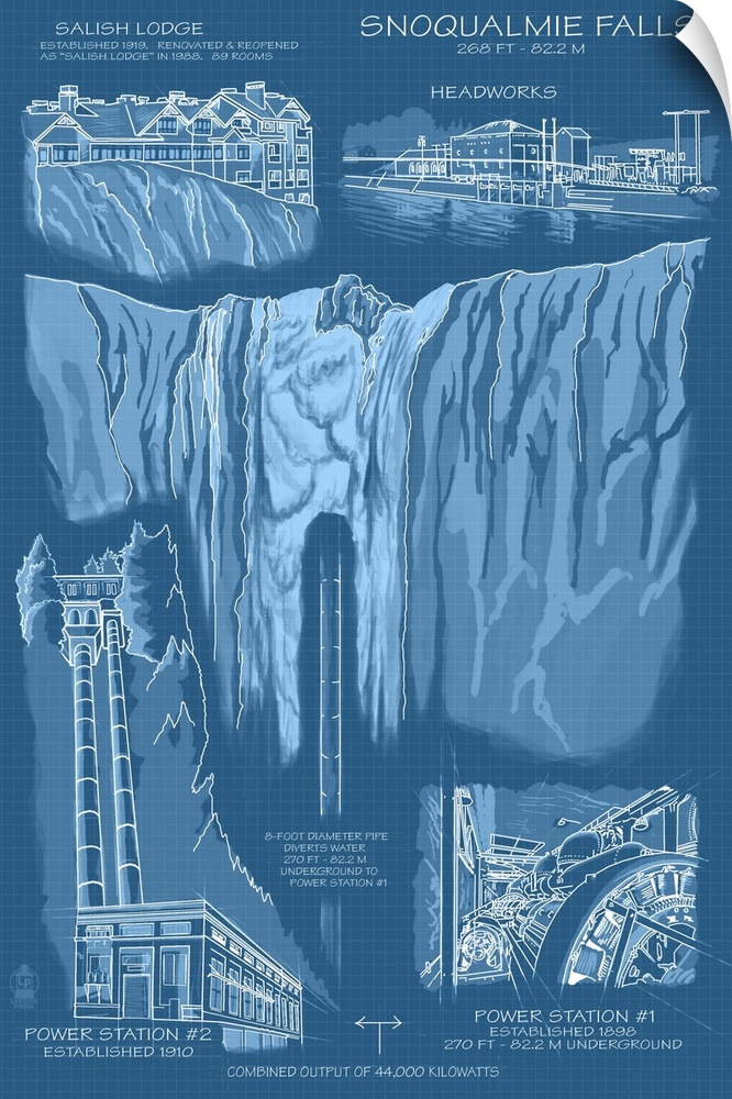Art Blueprints Landscapes Waterfall Lantern Press Washington