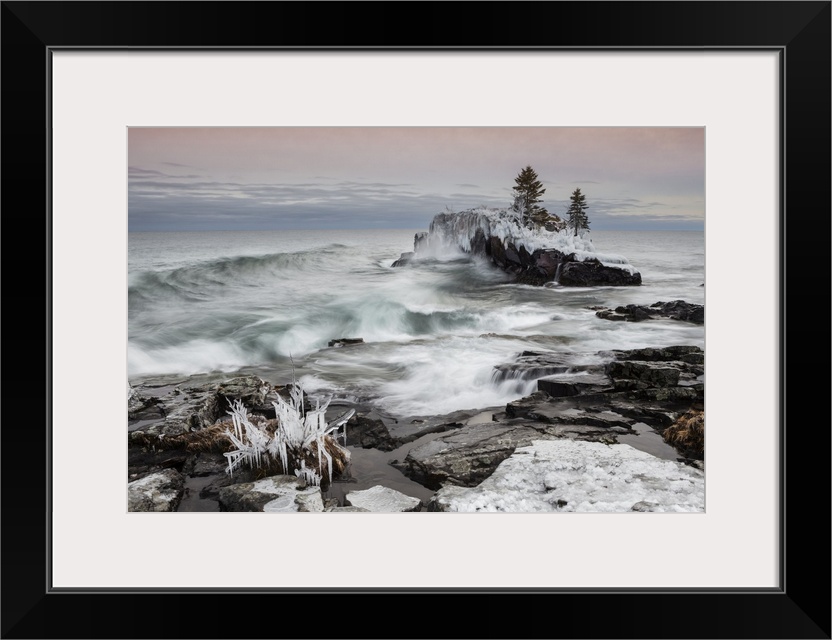 <p>Snow And Ice Along The Shoreline Of Lake Superior In Winter; Thunder Bay, Ontario, Canada</p>