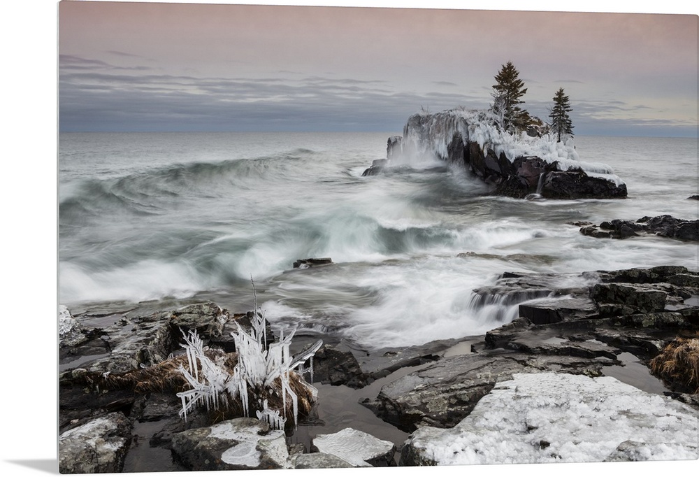 <p>Snow And Ice Along The Shoreline Of Lake Superior In Winter; Thunder Bay, Ontario, Canada</p>