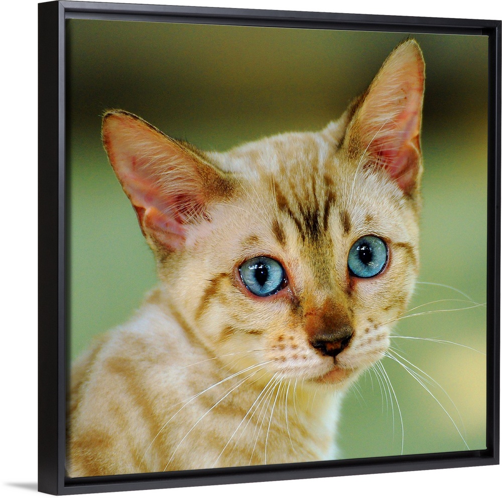 <p>Portrait of a cream colored Bengal kitten with blue eyes.</p>