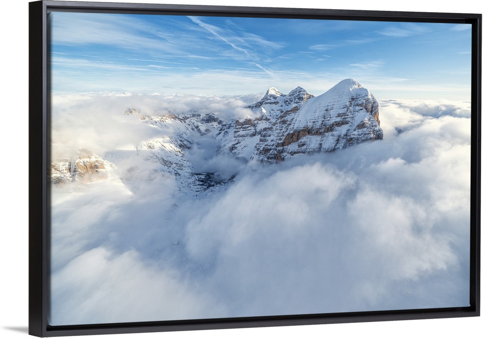 <p>Aerial view of the snow capped Tofane group in a sea of clouds, Dolomites, Belluno province, Veneto, Italy, Europe</p>