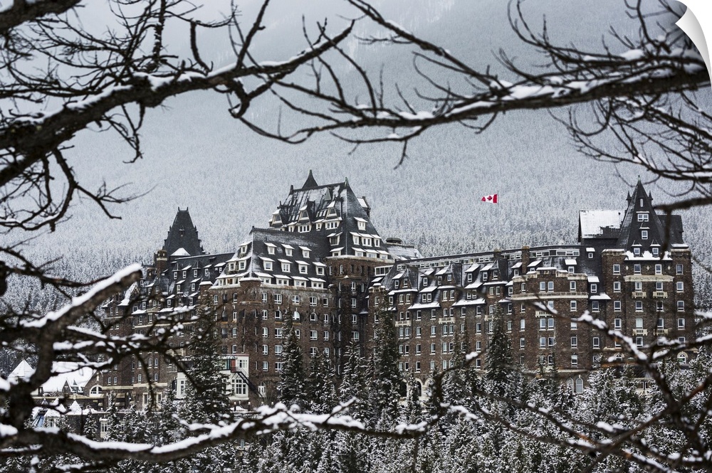 <p>Snow Covered Banff Springs Hotel, Banff, Alberta, Canada</p>