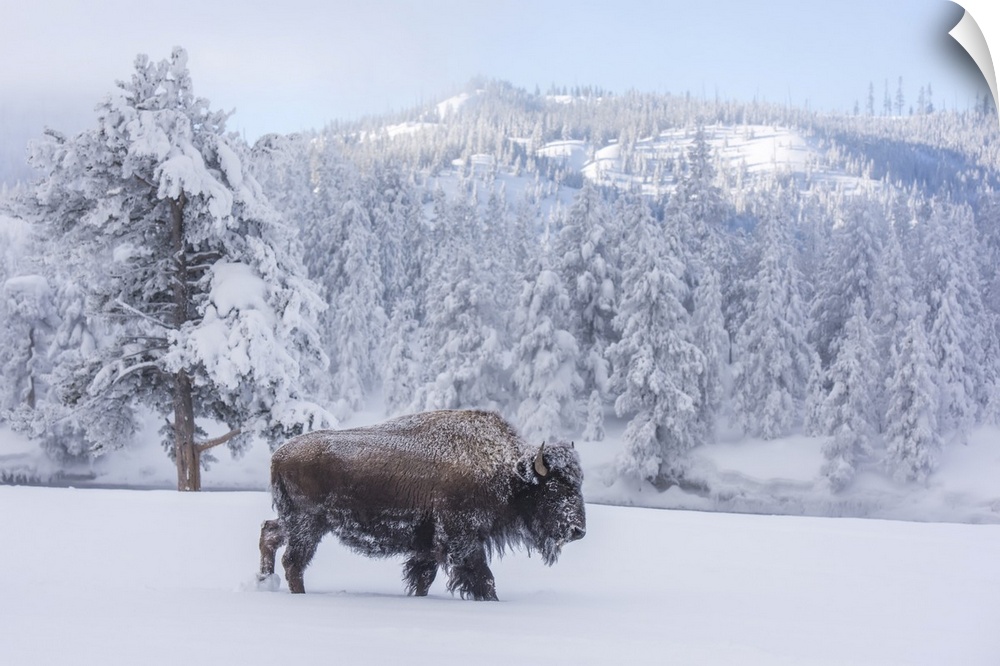 <p>Snow-covered Bison (Bison bison) at Firehole River, Yellowstone National Park, Wyoming, United States of America</p>