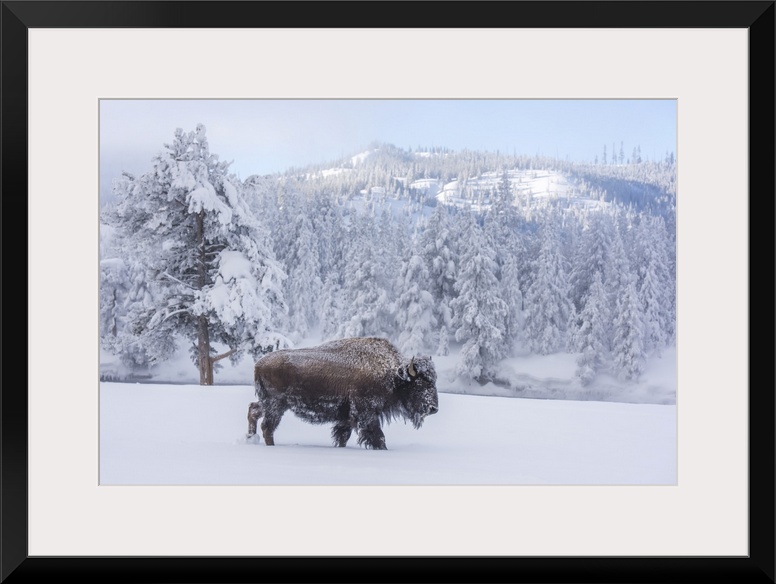 <p>Snow-covered Bison (Bison bison) at Firehole River, Yellowstone National Park, Wyoming, United States of America</p>