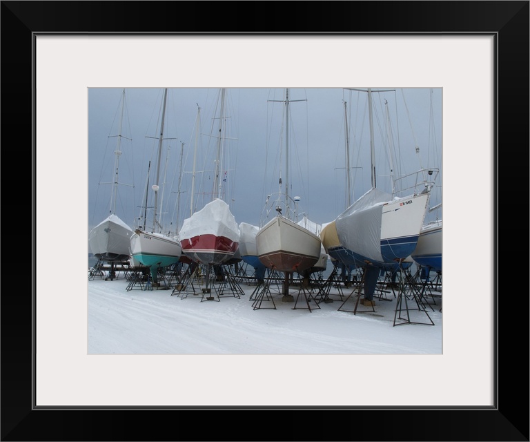 <p>Snow covered boats at Christmas, Jamestown, Newport County, Rhode Island, USA</p>