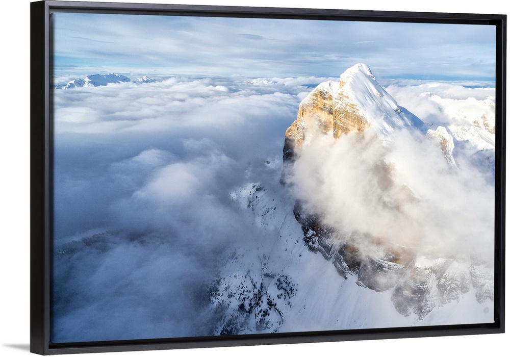 <p>Snow covered Tofana di Rozes above the clouds, aerial view, Dolomites, Belluno province, Veneto, Italy, Europe</p>