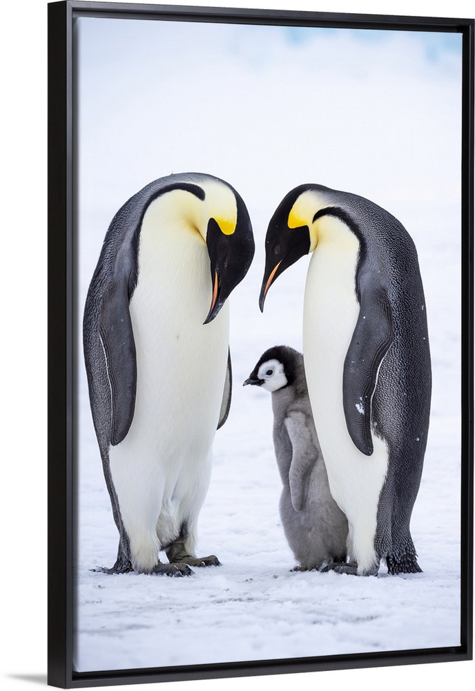 <p>Snow Hill Island, Antarctica, Emperor Penguins Nestling And Bonding With Their Chick</p>