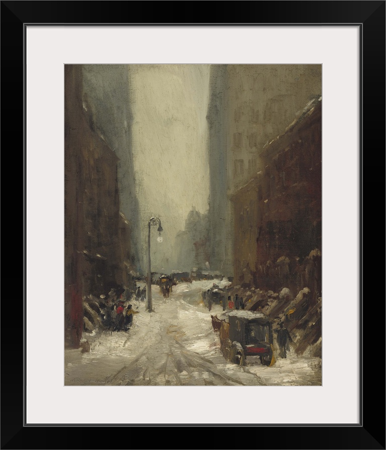 <p>Snow in New York, by Robert Henri, 1902, American painting, oil on canvas. Brownstone apartments and office buildings during a snow storm on March 5, 1902. Already the snow in the street is becoming gray slush under horse cart wheels (BSLOC_2016_6_75)</p>
