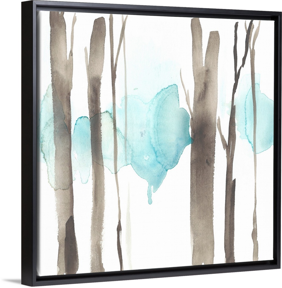 <p>Square watercolor painting of abstract tree trunks in brown against a white background.</p>