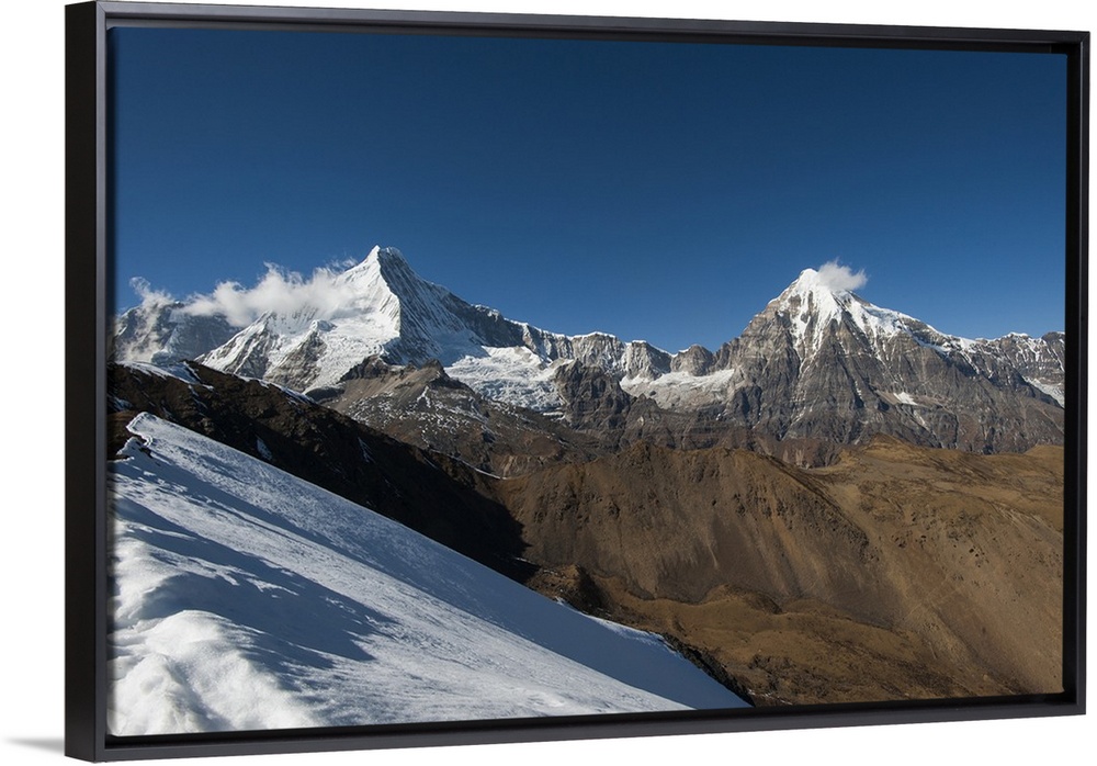 <p>Snow on the Nyile La, a 4950m pass, and the peak of Jitchu Drake at 6714m in the distance, Bhutan, Himalayas</p>