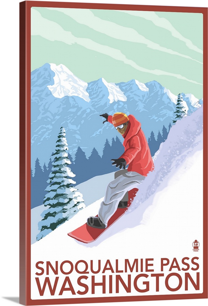 Snowboarder Scene - Snoqualmie Pass, Washington: Retro Travel Poster