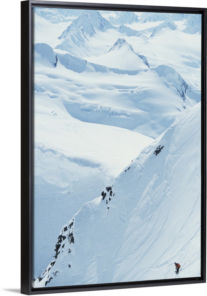 <p>Snowboarding, Chugach Mountains, Alaska, USA, elevated view</p>