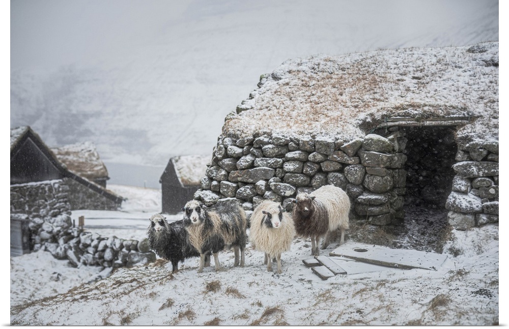 <p>Snowfall in the village of Saksun. Streymoy, Faroe Islands</p>