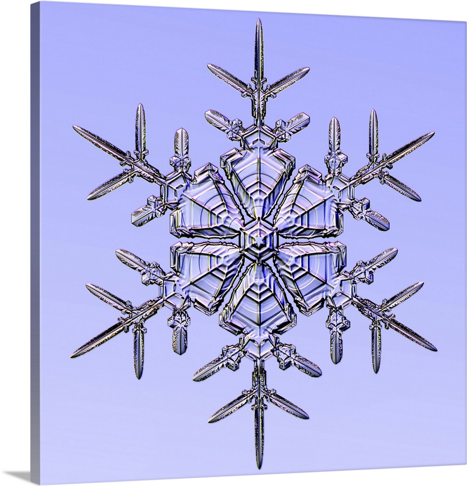 <p>Snowflake. Light micrograph of a stellar dendrite snowflake. Snowflakes are symmetrical ice crystals that form inside clouds when water vapour condenses directly into ice. The exact shape of each snowflake depends on local climatic conditions within the precise area of the cloud where it is formed. As such, no two snowflakes are identical, with each individual pattern emerging as the crystal grows. Dendritic snowflakes are fairly large crystals, typically 2-4 millimetres in diameter, that are easily seen with the naked eye.</p>