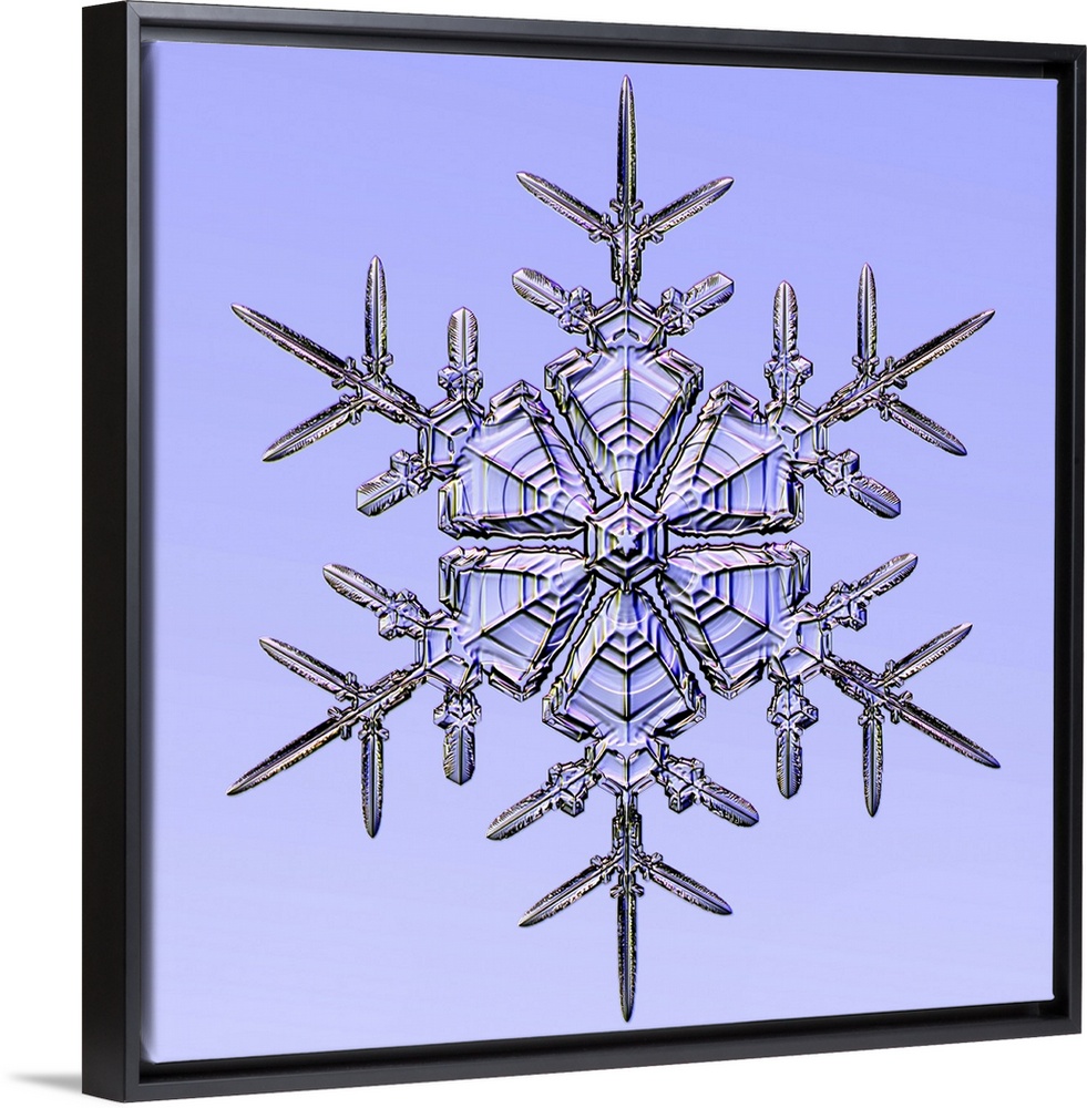 <p>Snowflake. Light micrograph of a stellar dendrite snowflake. Snowflakes are symmetrical ice crystals that form inside clouds when water vapour condenses directly into ice. The exact shape of each snowflake depends on local climatic conditions within the precise area of the cloud where it is formed. As such, no two snowflakes are identical, with each individual pattern emerging as the crystal grows. Dendritic snowflakes are fairly large crystals, typically 2-4 millimetres in diameter, that are easily seen with the naked eye.</p>