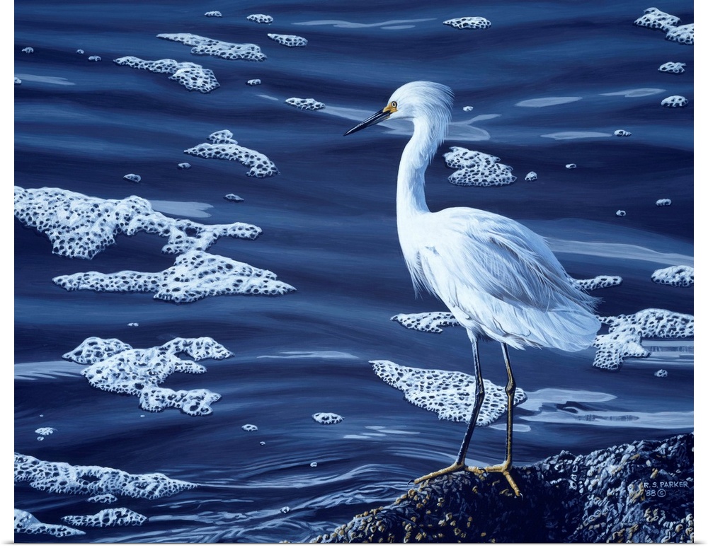 Art Blue Wall Art Contemporary Art Wildlife Painting Ron Parker Wildlife Bird Heron and Egret