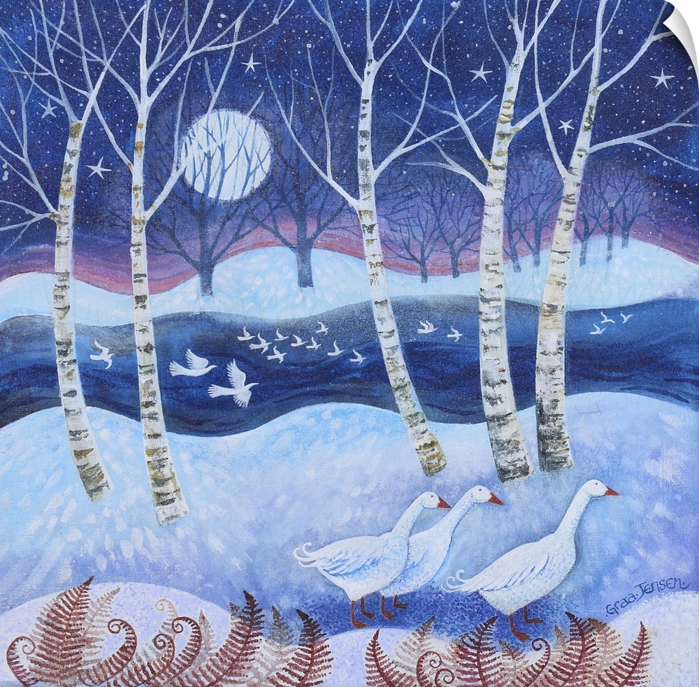 Art Blue Wall Art Contemporary Art Blue and White Christmas Winter Lisa Graa Jensen Painting Wildlife Bird Goose