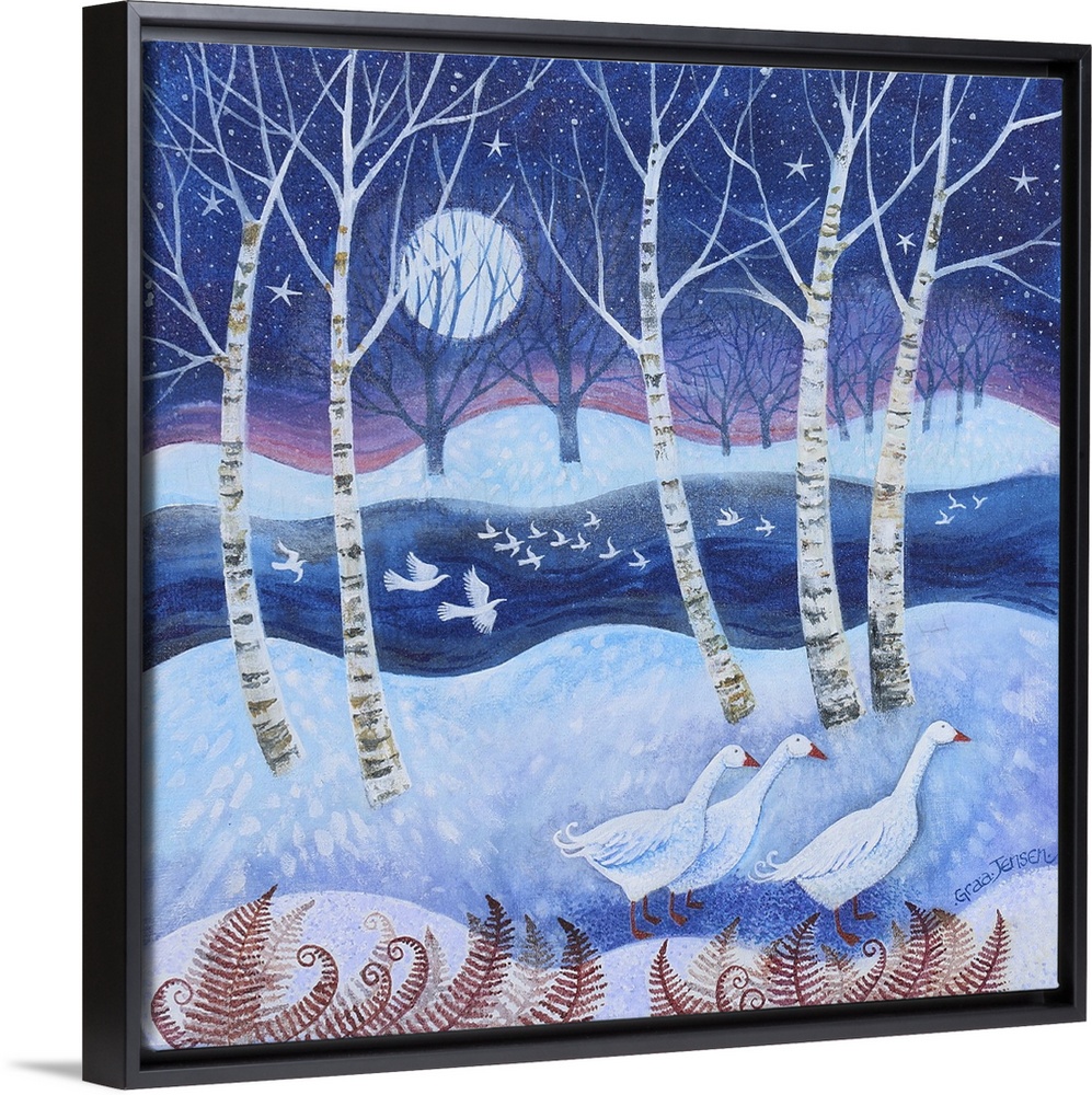 Art Blue Wall Art Contemporary Art Blue and White Christmas Winter Lisa Graa Jensen Painting Wildlife Bird Goose