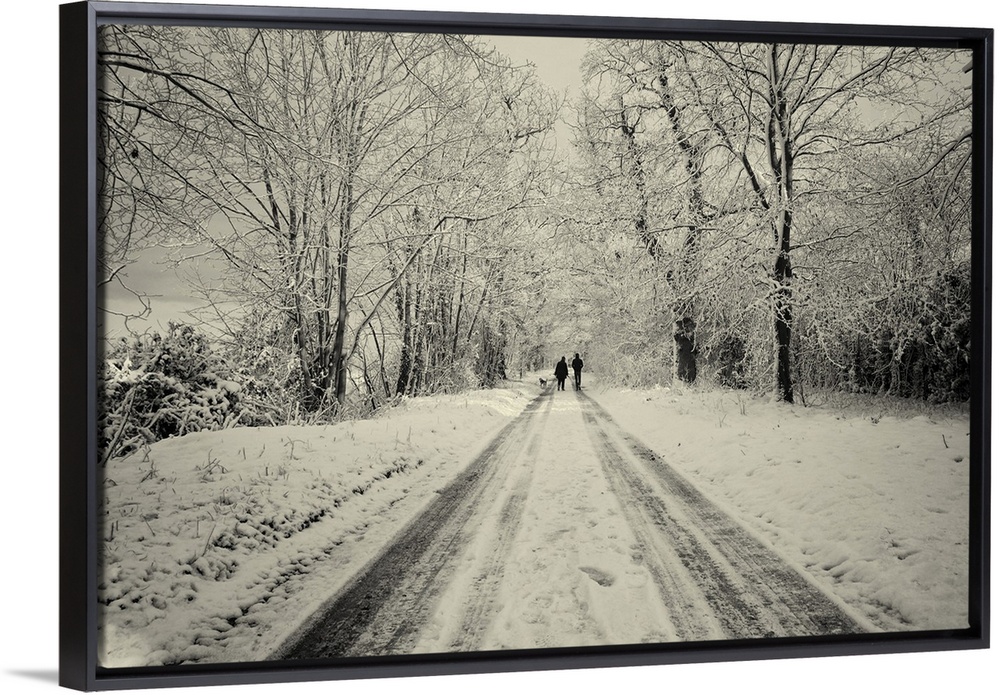 <p>Wintry lane in Suffolk, England with two figures in the distance.</p>