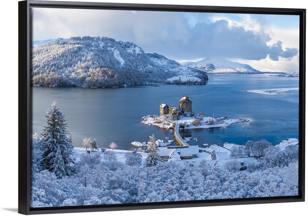 <p>Snowy morning at Eilean Donan Castle on Loch Duich, Dornie, Western Highlands, Scotland, United Kingdom</p>