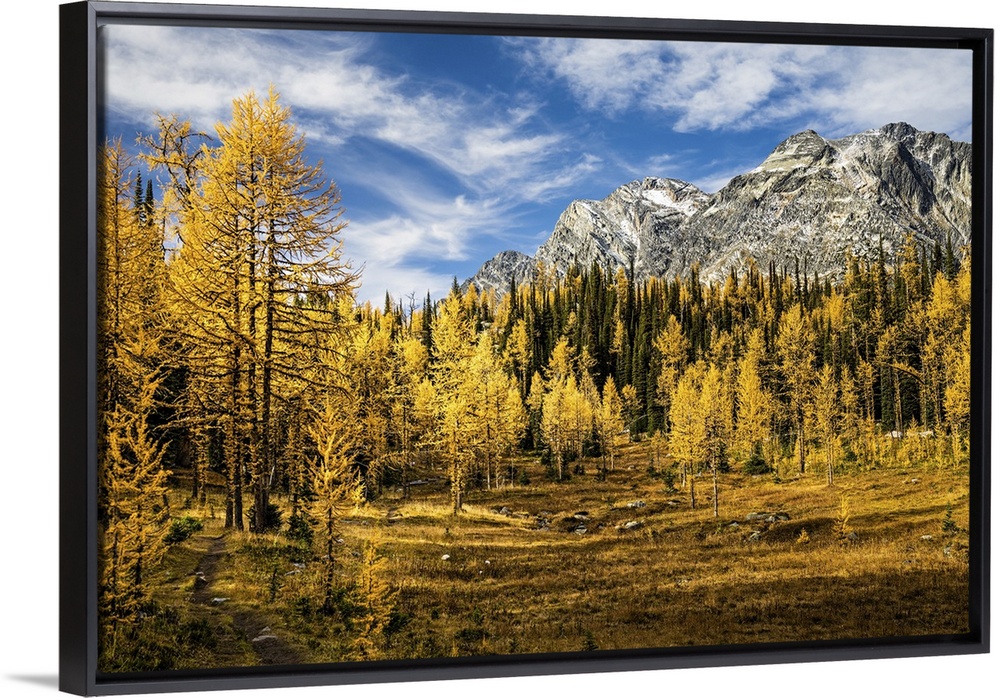 <p>Golden larches everywhere in a high mountain meadow.</p>