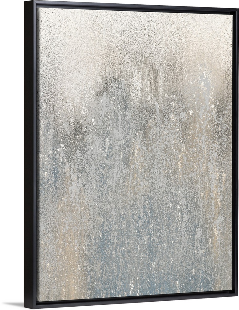 <p>Contemporary abstract painting created with shades of tan and gray splattered all over the canvas with the splatter more dense in the middle and at the bottom.</p>