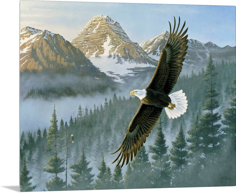 Art Contemporary Art Landscapes Wildlife Wilhelm Goebel Landscapes Mountains Trees Forest Painting Wildlife Bird Eagle