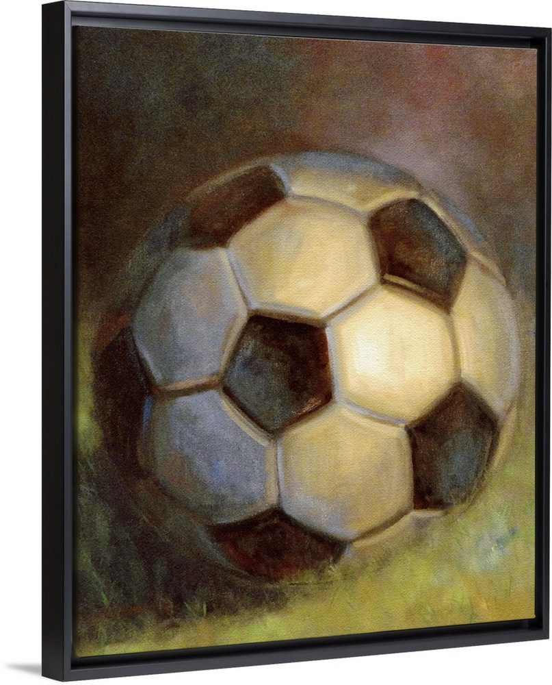 <p>Contemporary still-life painting of a soccer ball sitting on grass.</p>