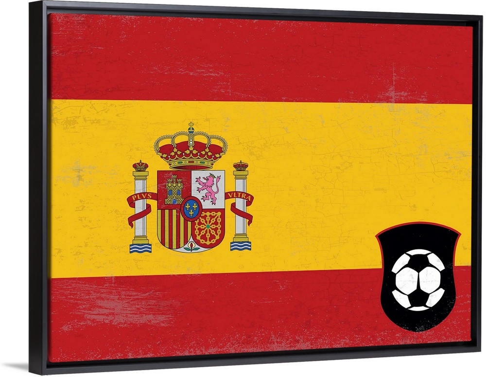 <p>Flag of Spain with soccer crest with soccer ball.</p>