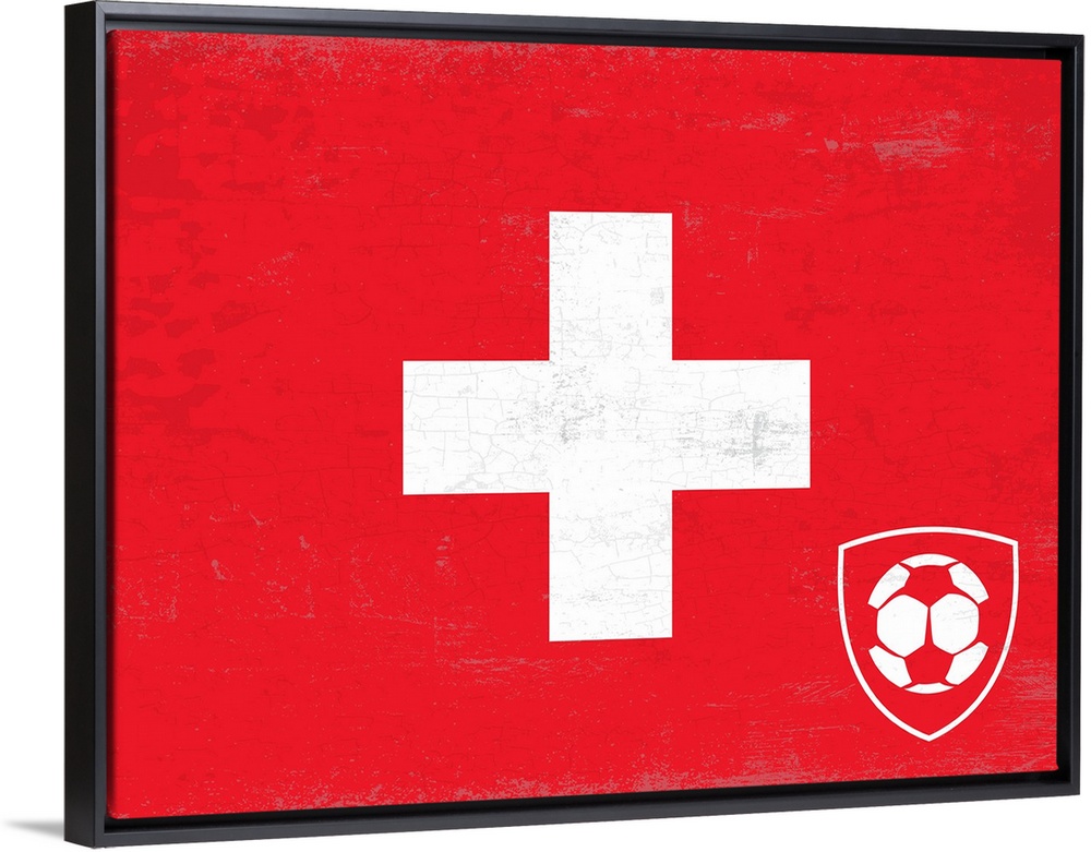 <p>Flag of Switzerland with soccer crest with soccer ball.</p>