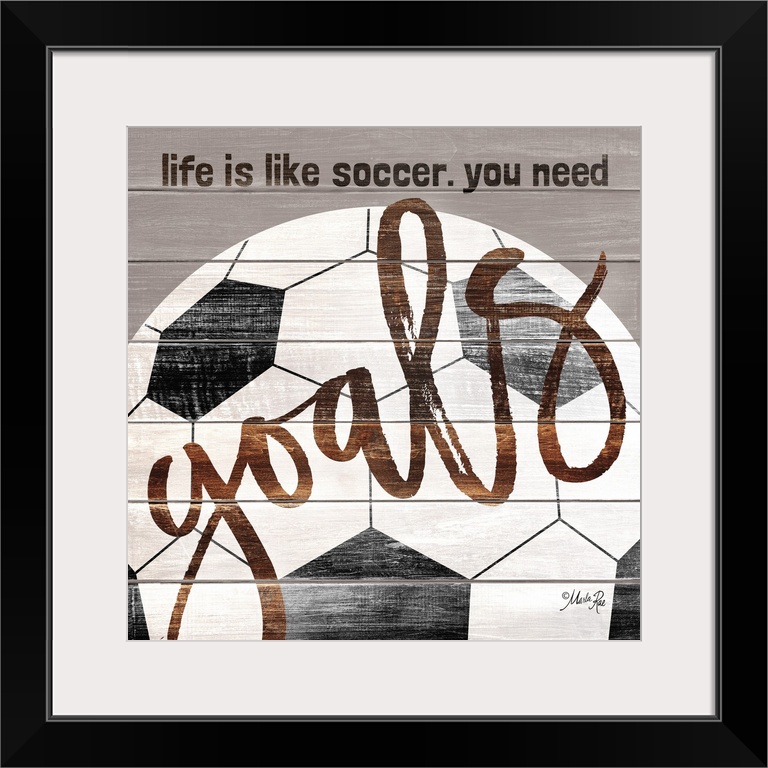 <p>Soccer themed typography art on a wooden board background.</p>