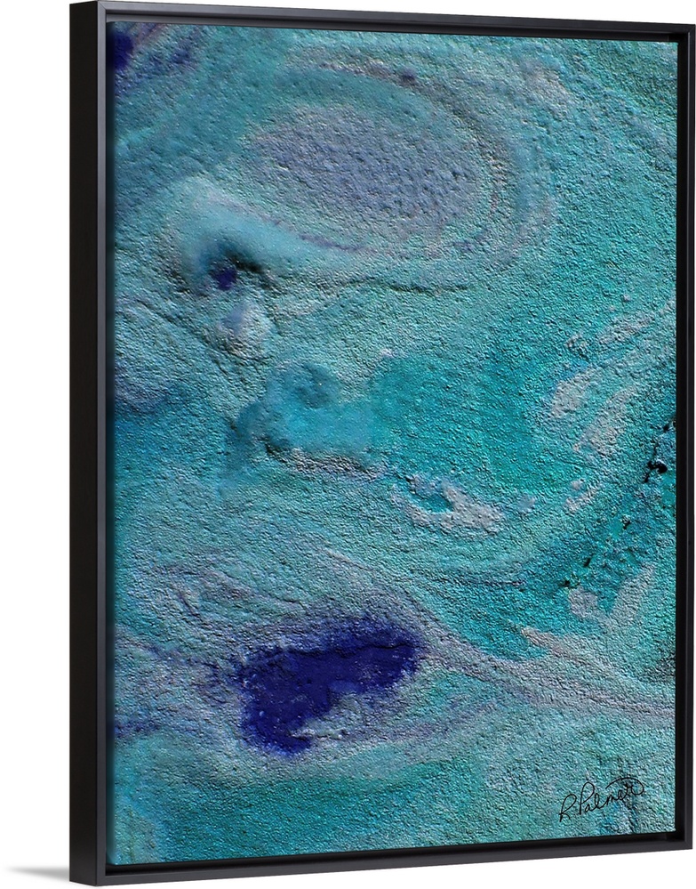<p>Contemporary abstract painting using swirling teal and blue colors.</p>