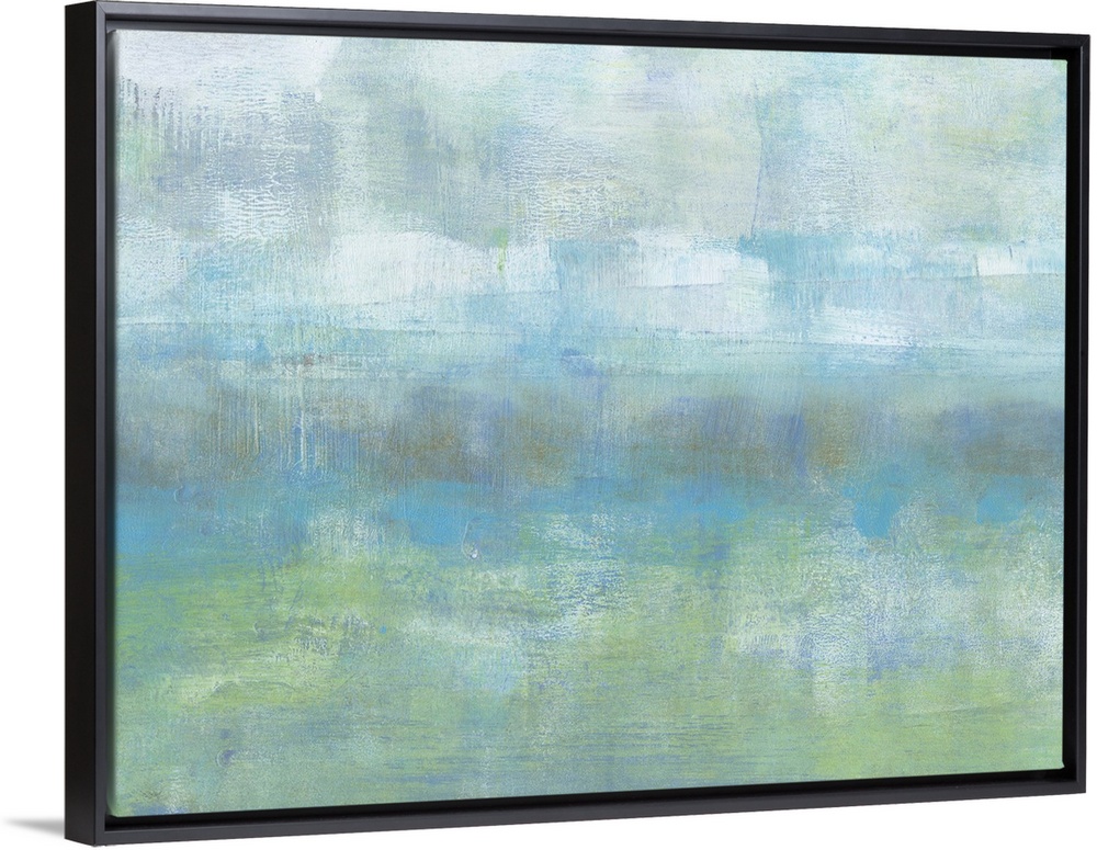<p>Contemporary abstract painting using green and blue tones to create what looks like a blanket of clouds.</p>
