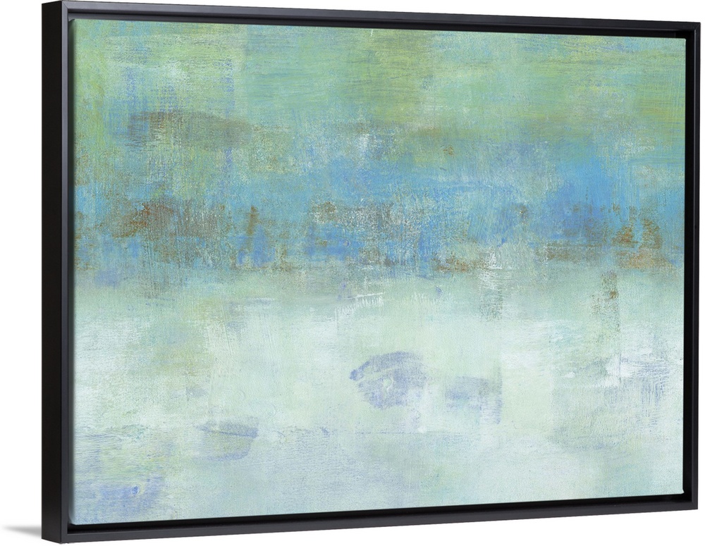 <p>Contemporary abstract painting using green and blue tones to create what looks like a blanket of clouds.</p>
