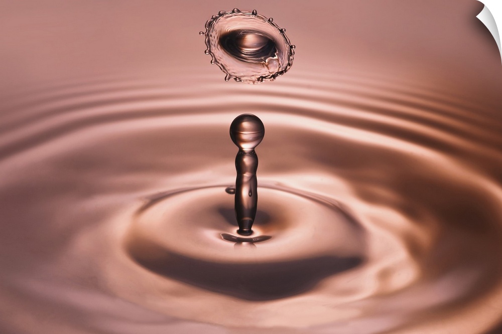 <p>A macro photograph of a water droplet rising up from a small splash.</p>