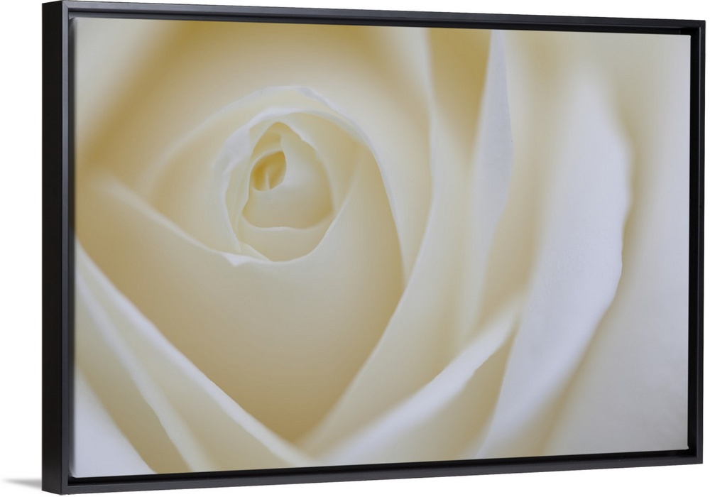 <p>A contemporary close-up of a rose bud opening filling the frame toned in cool pale white.</p>