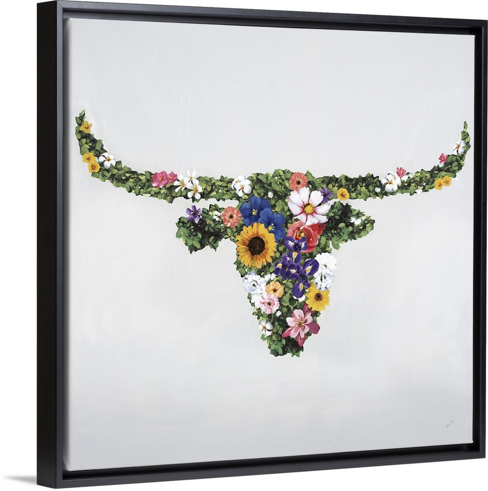 <p>Floral silhouette of a bull with horns.</p>