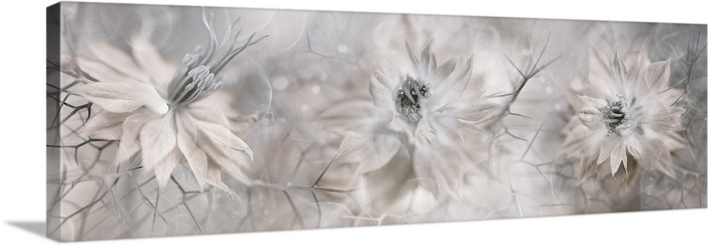 <p>"A delicate triptych of Nigella flowers, softly intertwined with dreamy pastel tones and intricate details. The composition blends three images seamlessly, creating a serene and ethereal atmosphere with a focus on light, texture, and the fragile beauty of nature."</p>