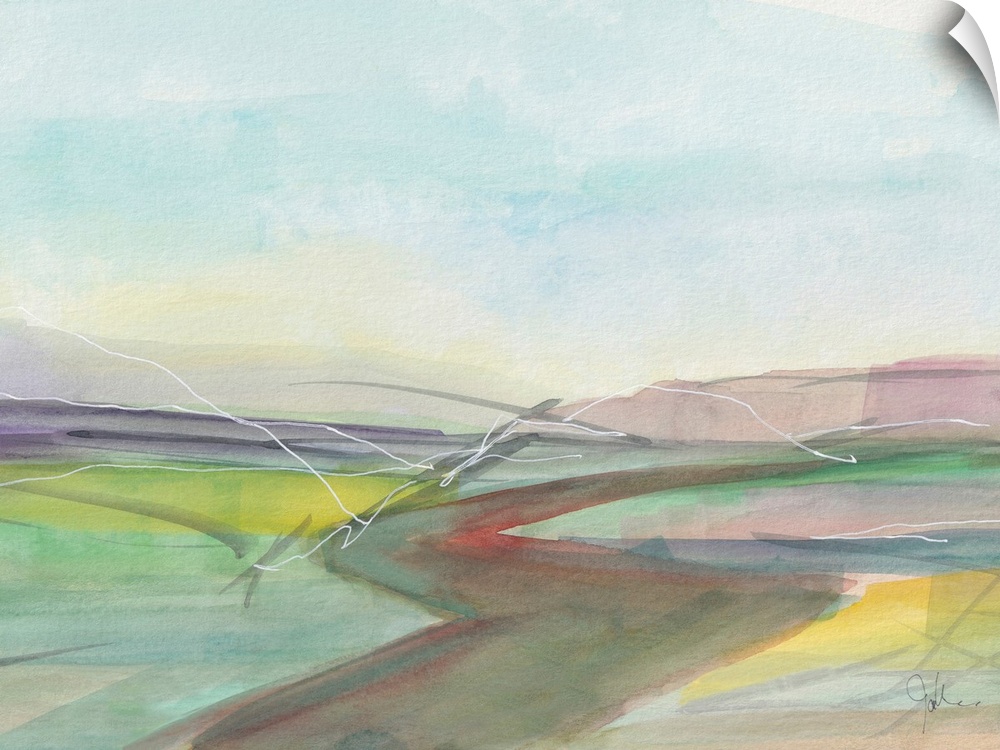 Art Contemporary and Modern Contemporary Art Landscapes River, Creek and Stream Multicolor Wall Art Painting Watercolor Jan Weiss