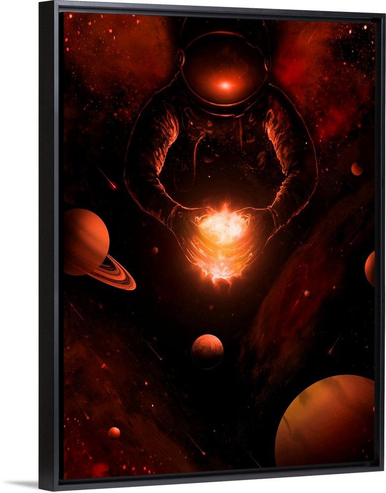 Art Nicebleed Art Fantasy Science Fiction Graphic Art Red Wall Art Burgundy Space Astronaut Planets and Satellites Surrealism