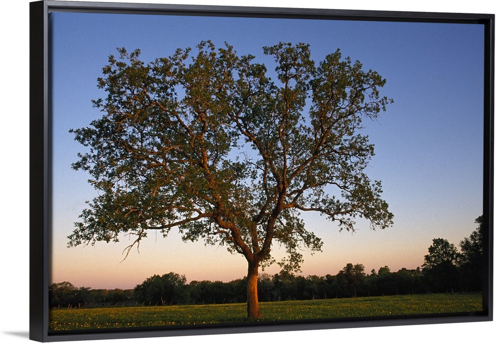 <p>Big photo on canvas of a tree in a field at sunset.</p>