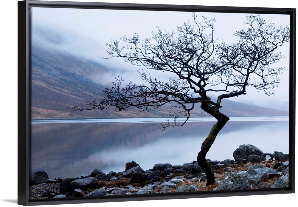 <p>Solitary tree on the shore of Loch Etive, Highlands, Scotland, UK</p>