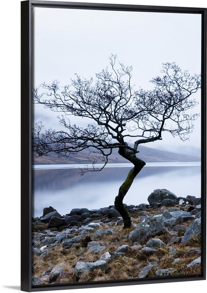 <p>Solitary tree on the shore of Loch Etive, Highlands, Scotland, UK</p>