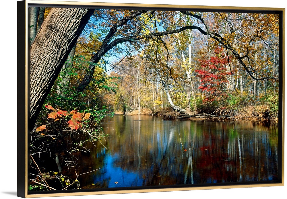 <p>This landscape photograph is the Lamington River flowing through a forest in New Jersey in late autumn or early winter.</p>