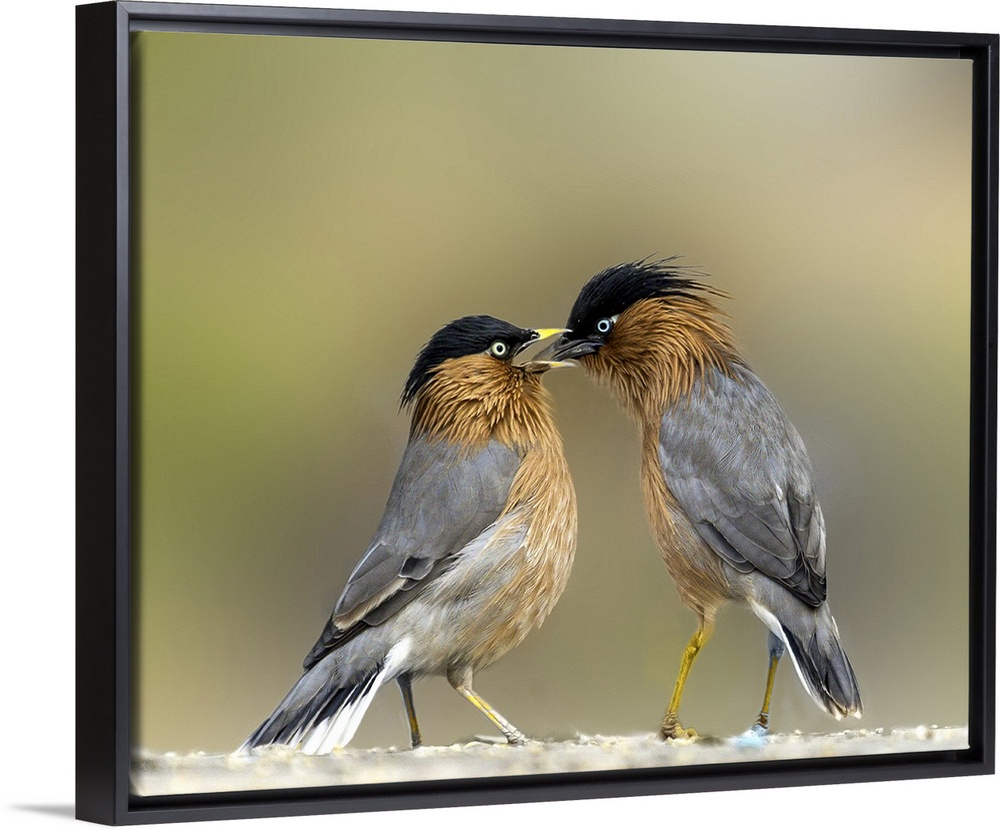<p>Two Brahminy Starlings showing affection.</p>