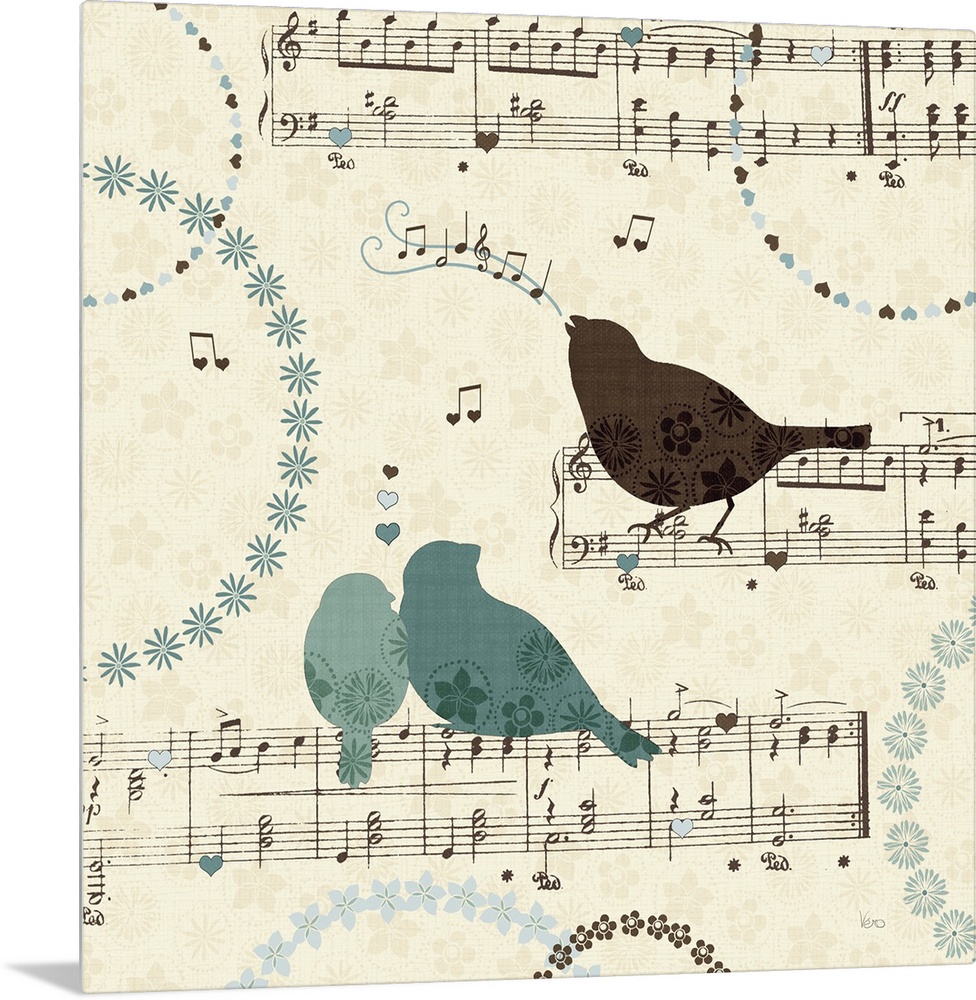 Art Veronique Charron Decorative Art Graphic Art Music Musical Notation Bird